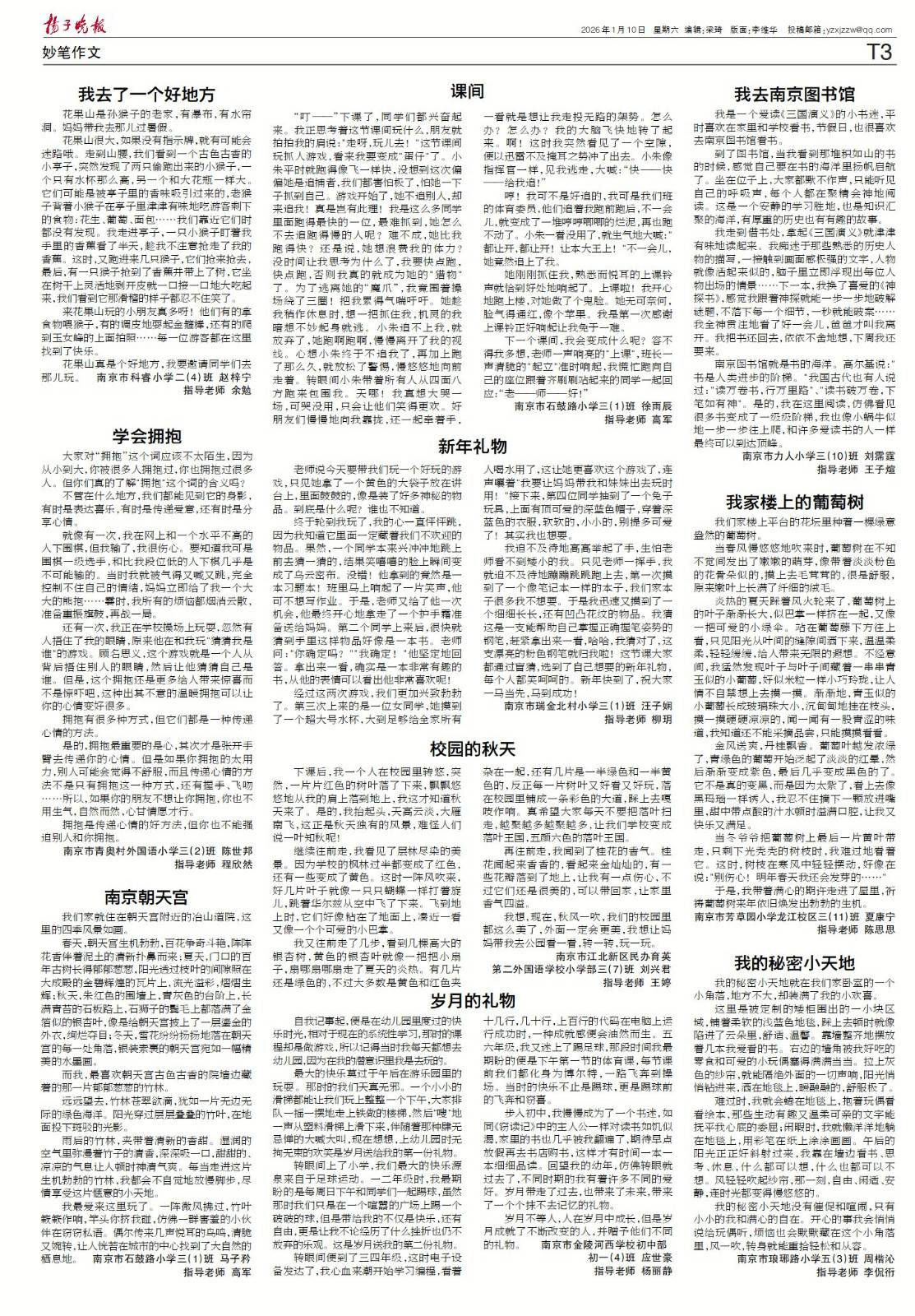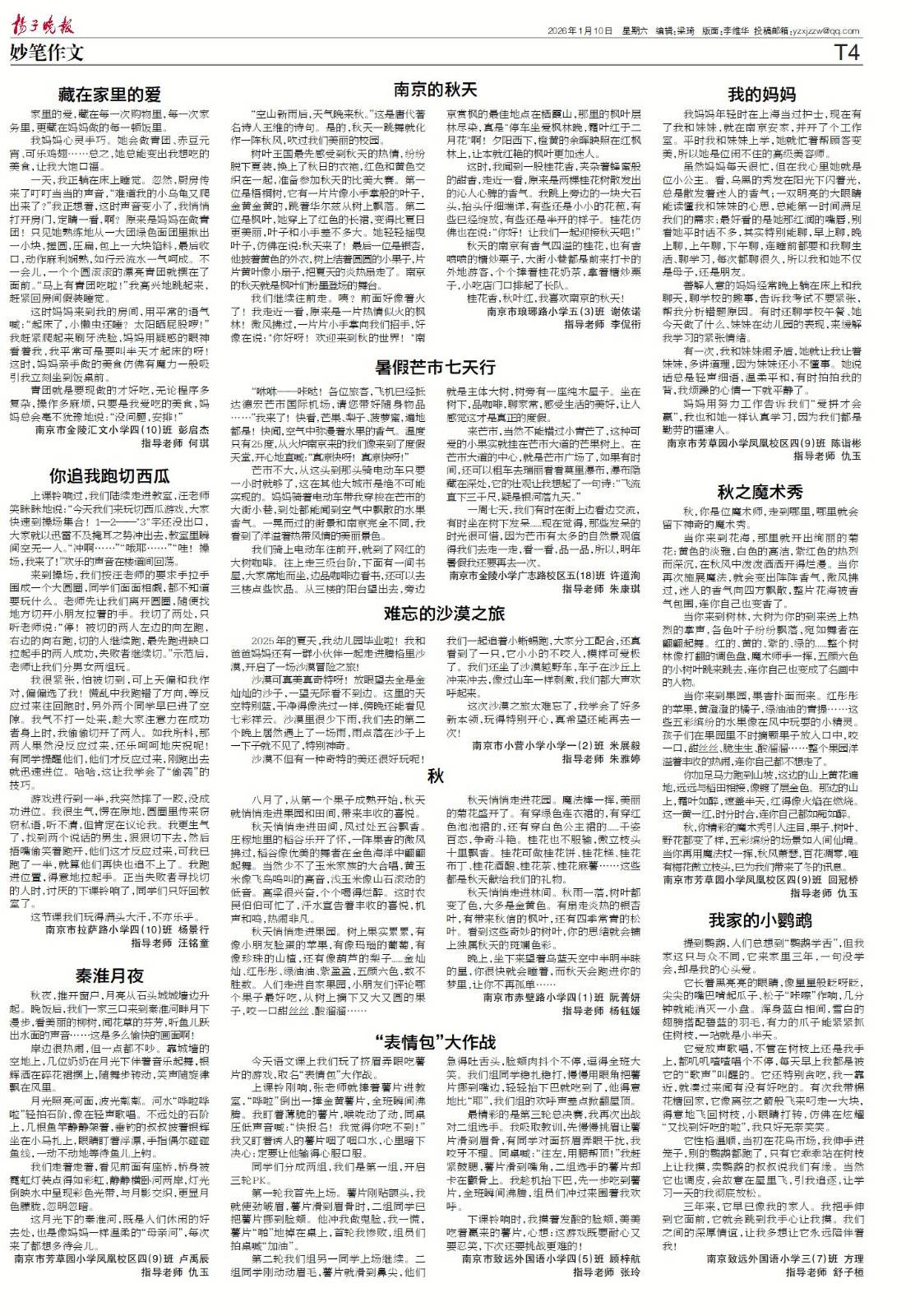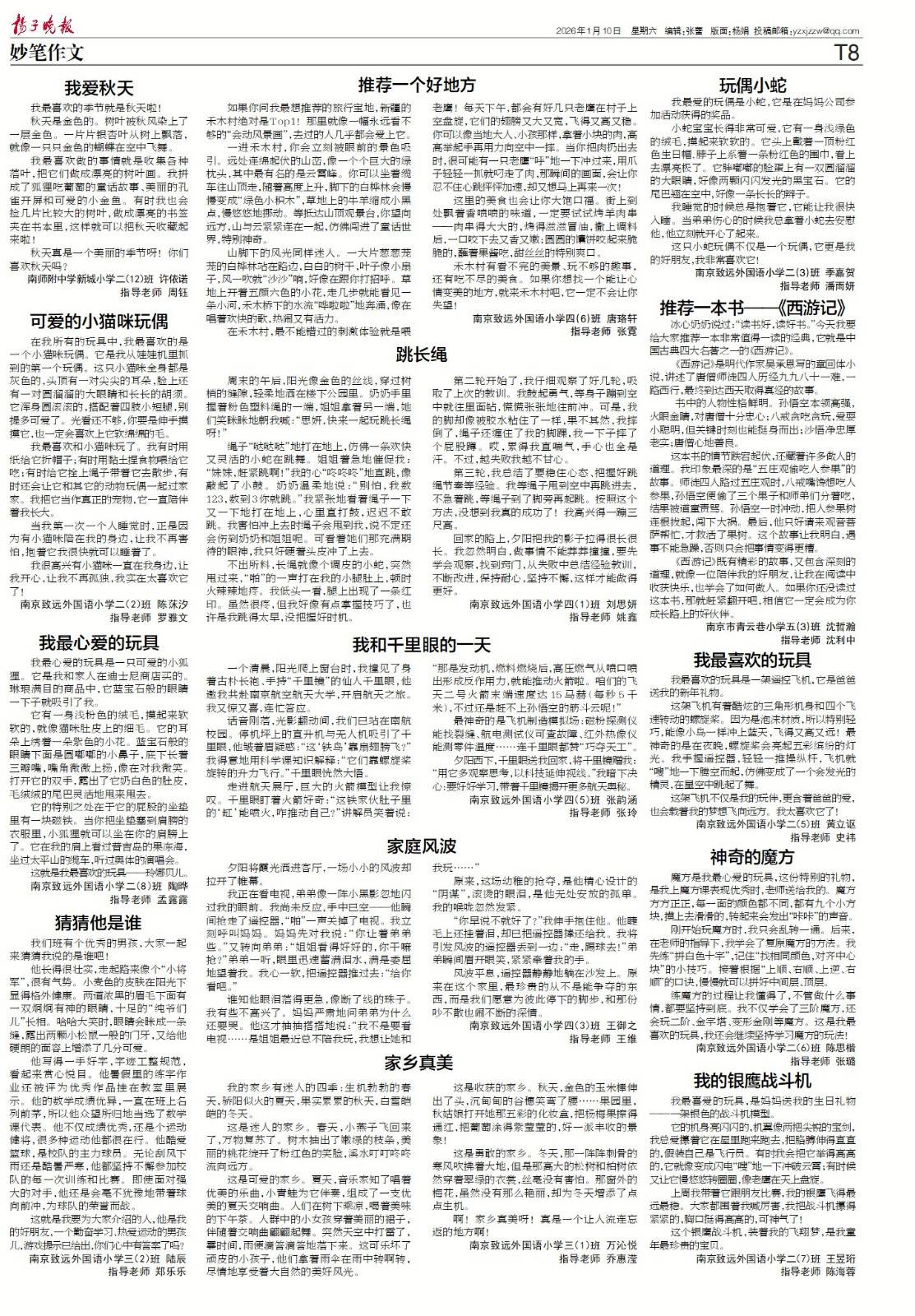 【喜报】2026年1月10日扬子晚报小记者刊登作品