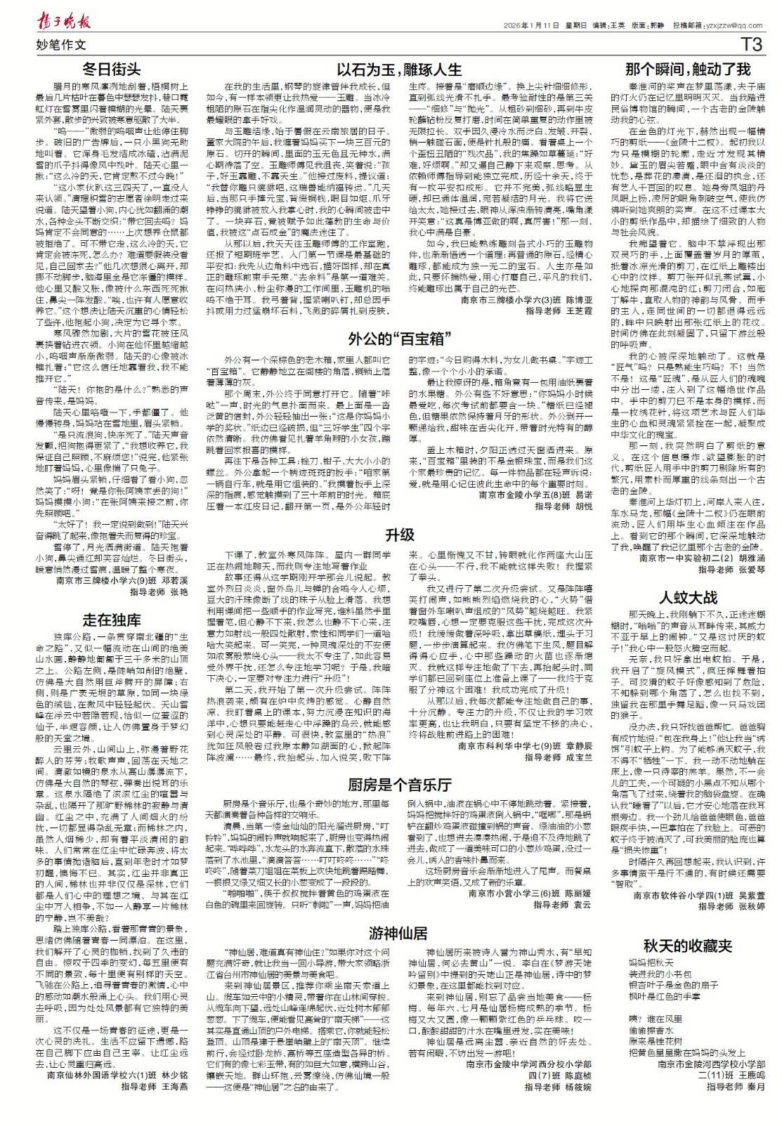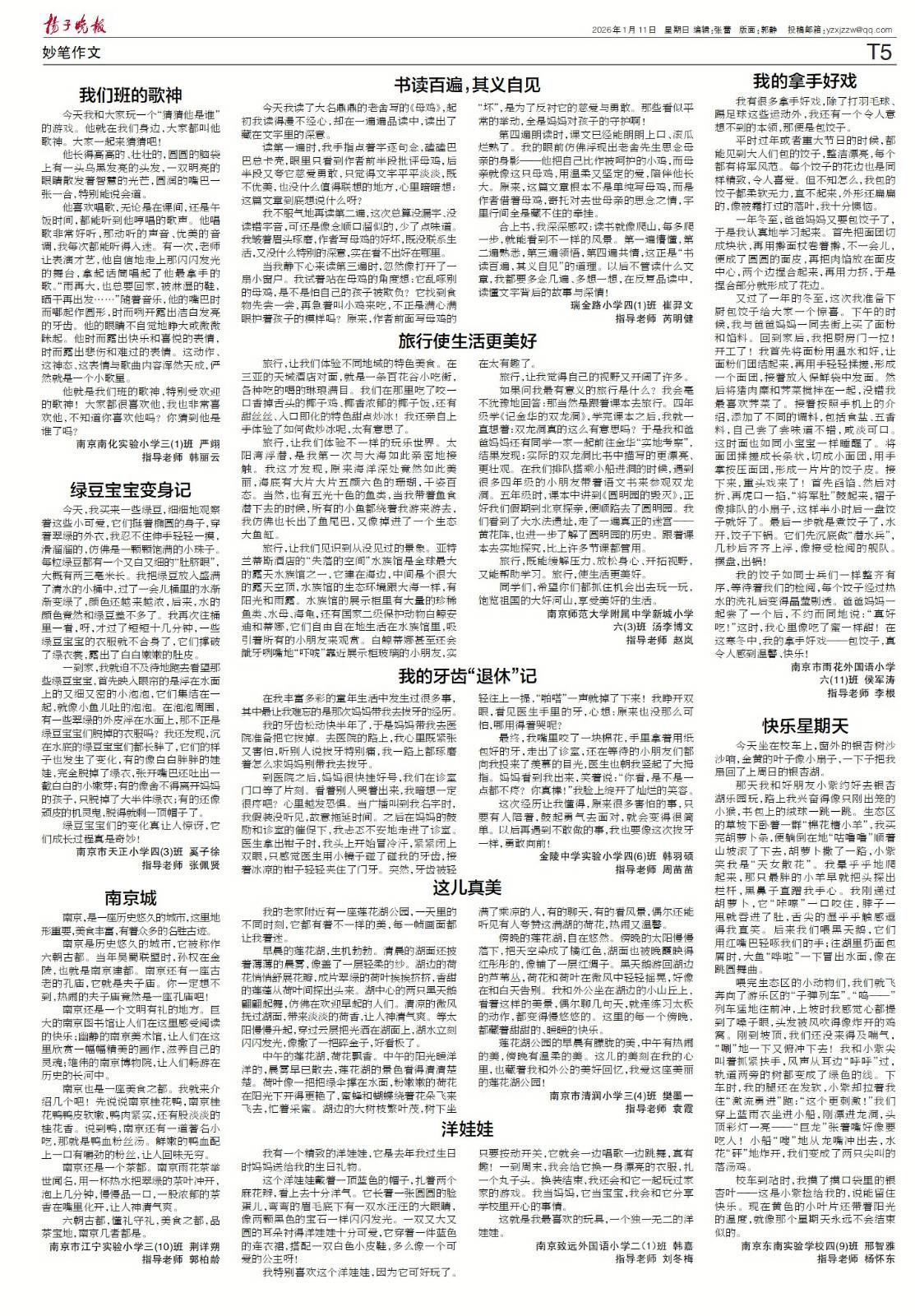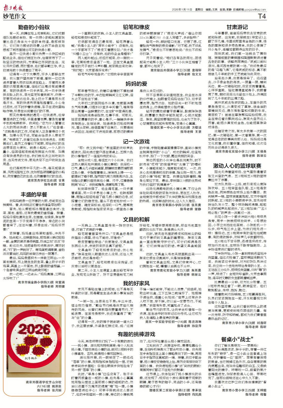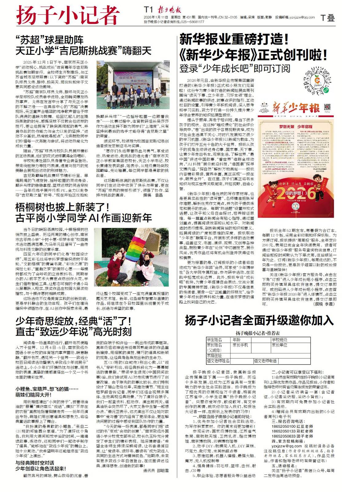 【喜报】2026年1月11日扬子晚报小记者刊登作品
