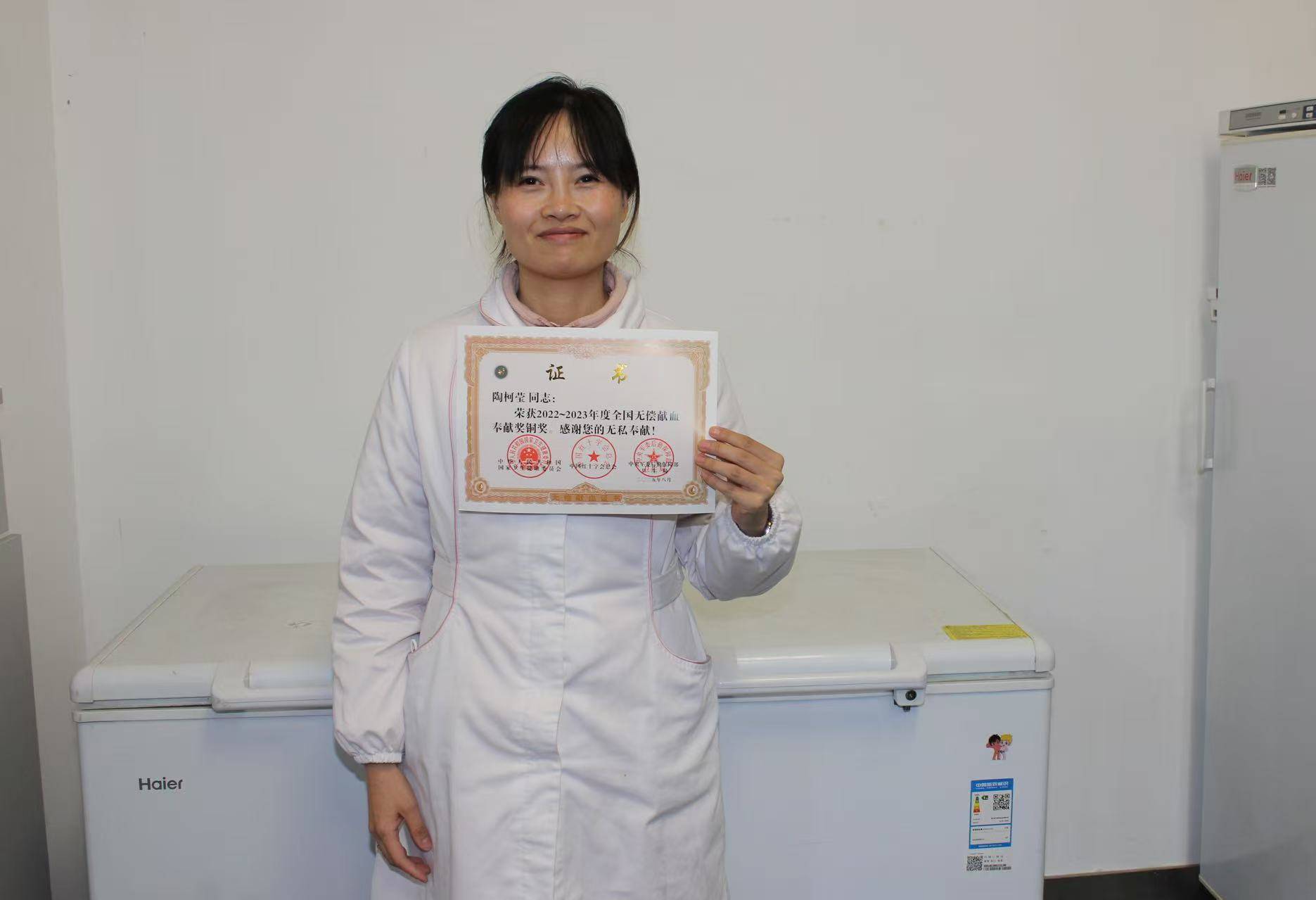 90后组织人事科科员钱郑多,同样也是这支爱心团队的一员。这是她第二次荣获全国无偿献血奉献奖,自2015年首次献血以来,她已累计献血18次,捐献全血5000毫升、单采血小板7治疗量。多年来,她始终秉持这份爱心,用点滴善举传递温暖。