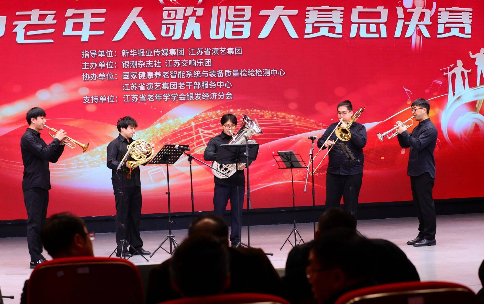 比赛在江苏交响乐团铜管五重奏中拉开序幕。银潮杂志社总编辑陆洪标发表致辞。他表示,本次中老年歌唱大赛的举办,既是落实积极应对人口老龄化国家战略的具体举措,也是丰富中老年人精神文化生活、弘扬中华优秀传统文化的生动实践。他希望各位参赛选手以歌为媒,尽情展现歌唱才华,充分释放内心激情,用最真挚的情感、最饱满的状态,为大家带来一场视听盛宴。同时,也恳请各位评委老师认真评判、精准打分,让大赛成为发现人才、弘扬正能量的重要平台。