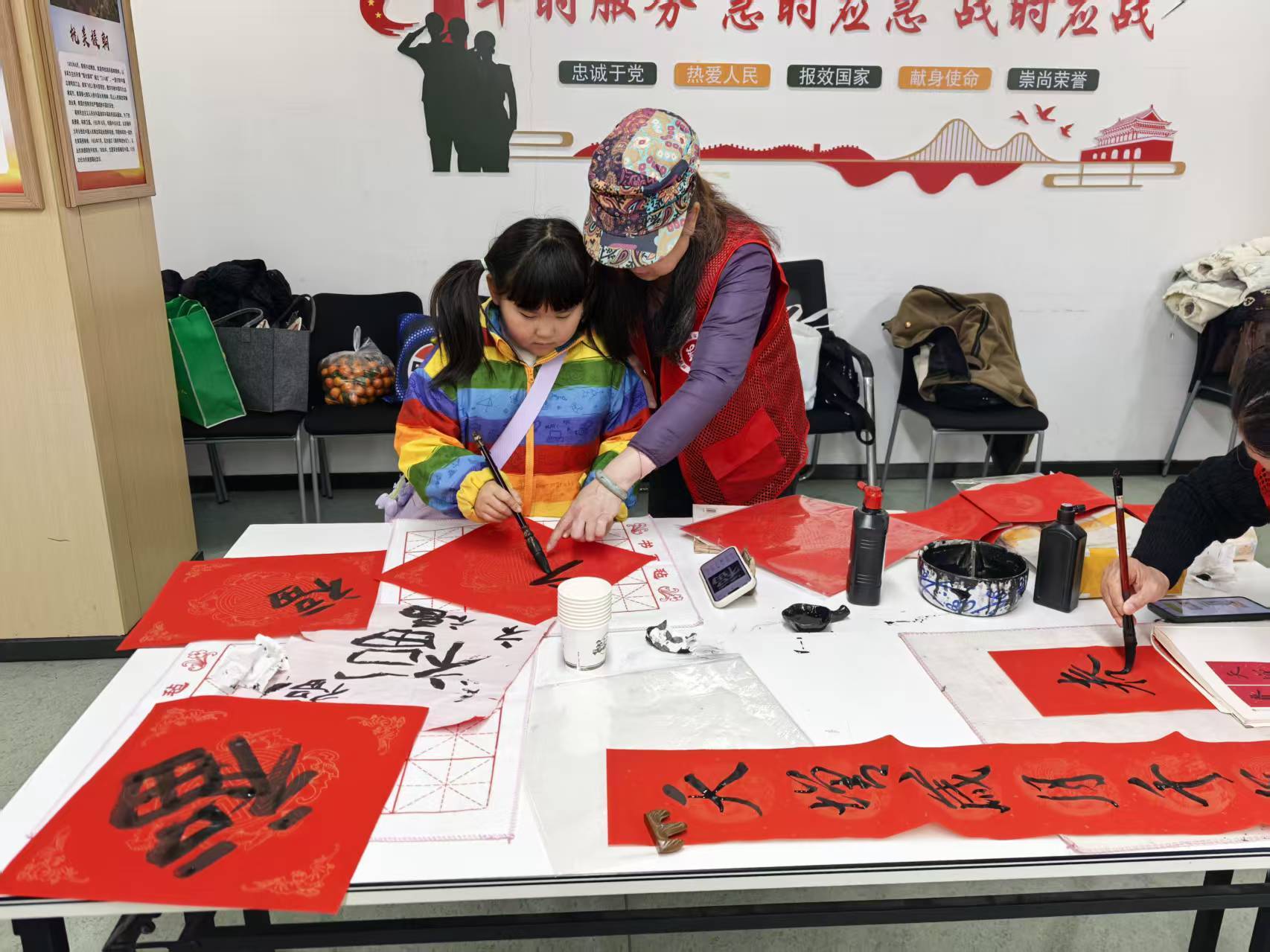 笔墨飘香处,谢意与祝福一同传递。为感谢东北老乡和志愿者们的暖心支援,瓷缘残疾人之家的老师们现场提笔,开展写对联、送福字活动。老师们凝神挥毫,笔锋婉转间,一幅幅承载着感恩与新春祝福的春联、一张张喜庆红火的福字跃然纸上。随后,老师们将饱含心意的对联与福字,亲手送到东北老乡和志愿者手中,红纸墨香里,既藏着节日的美好期许,更盛满了最纯粹的感恩之情。