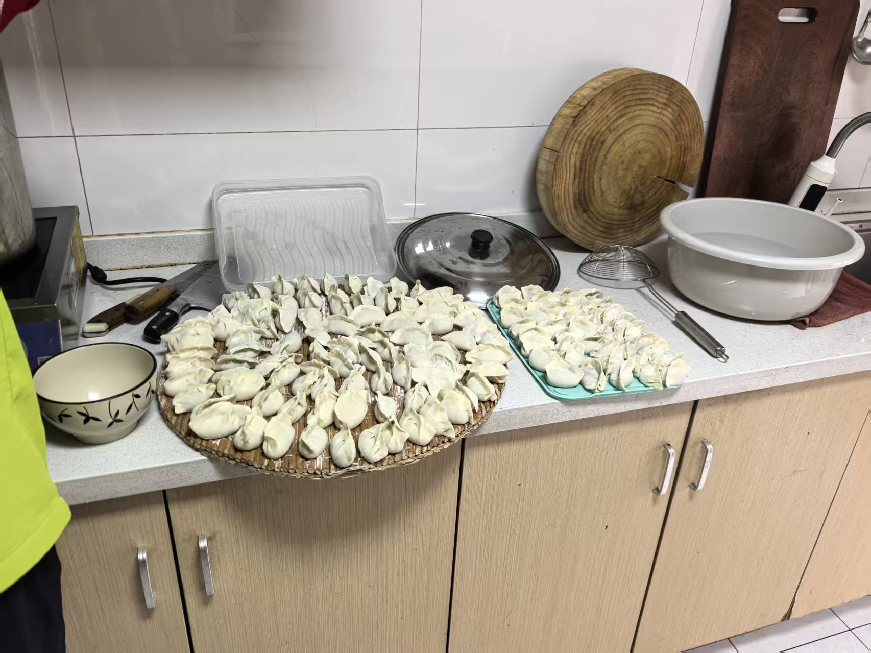 活动现场,包饺子区域暖意十足、热闹非凡。户志联志愿者们大展身手,成了包饺子的主力军,揉面、擀皮、调馅、捏合动作娴熟流畅,一气呵成。薄而有韧性的饺子皮在他们手中翻飞,饱满鲜美的肉馅被牢牢裹住,一个个形态周正的东北风味饺子很快摆满案板。待饺子下锅煮沸,鲜香四溢,出锅后大家争相品尝,瓷缘的学员们连连称赞,直言这饺子皮薄有嚼劲、肉馅量大味鲜,太好吃啦!