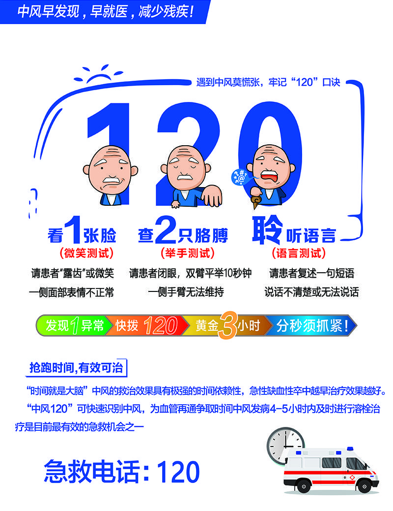 卒中急救,时间就是生命,就近送医是关键原则。请务必第一时间拨打120,由专业急救人员根据您的位置和病情,送至最近且具备救治能力的医院。