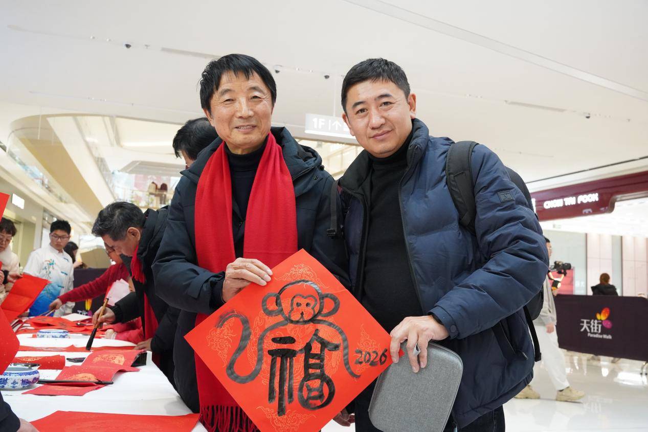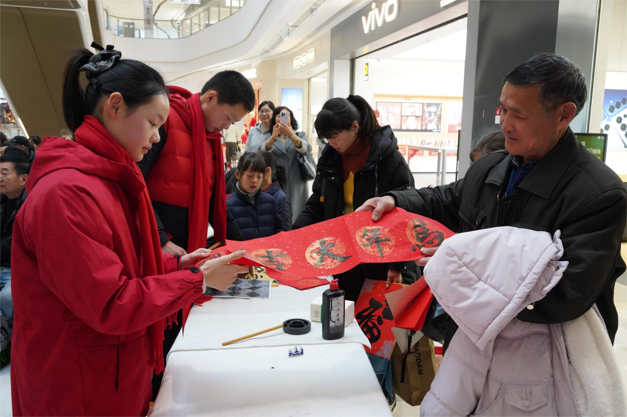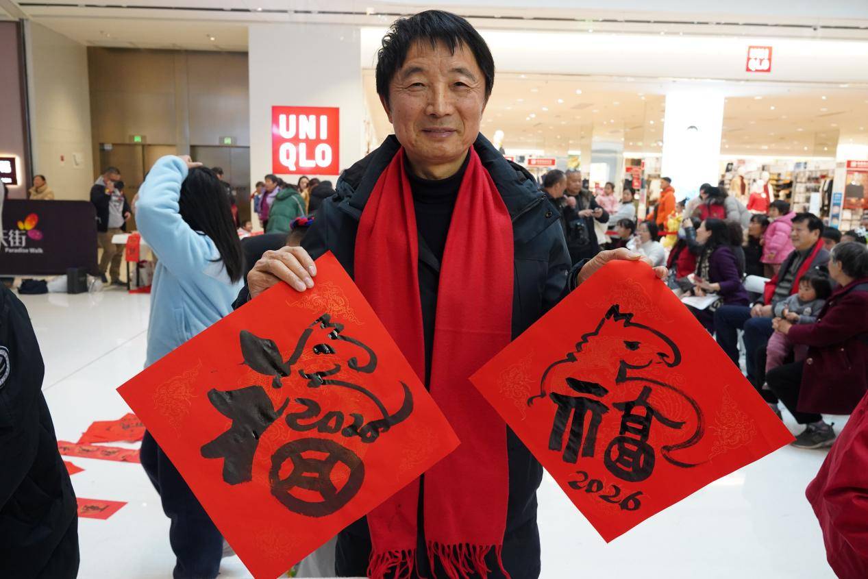 “没想到逛商场还能领到书法家亲手写的福字!”正准备逛完超市回家的李先生,小心翼翼地将墨迹未干的“福”字卷好收进背包,语气里满是欢喜,“这个福上还有我的属相,特别有意义,回去就贴在大门上。”