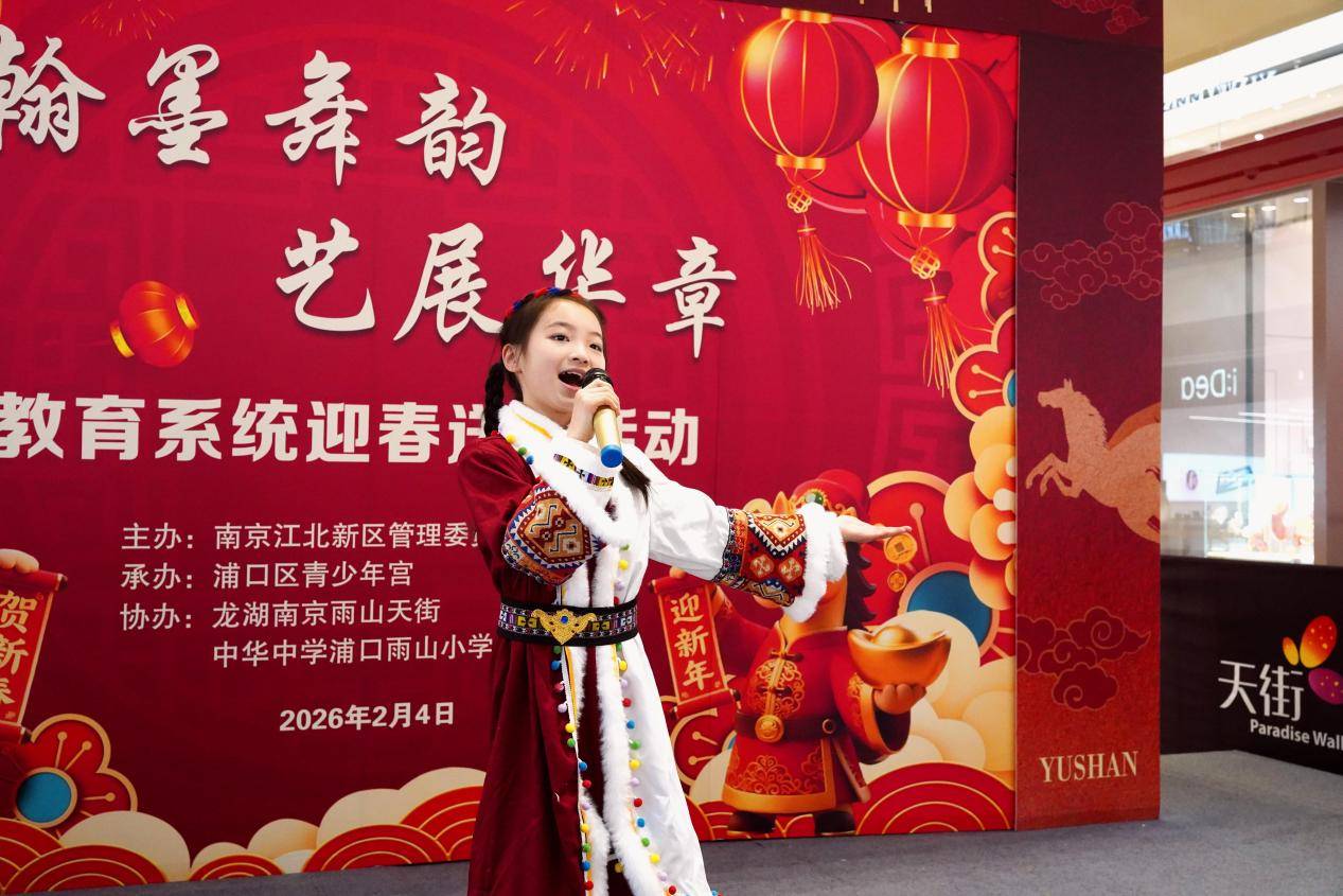 2月4日下午,南京江北新区管理委员会教育局主办、浦口青少年宫承办的“翰墨舞韵艺展华章”教育系统迎春送福活动,在龙湖南京雨山天街1楼中厅启幕,为新区市民送上了一份带着墨香的新春祝福。