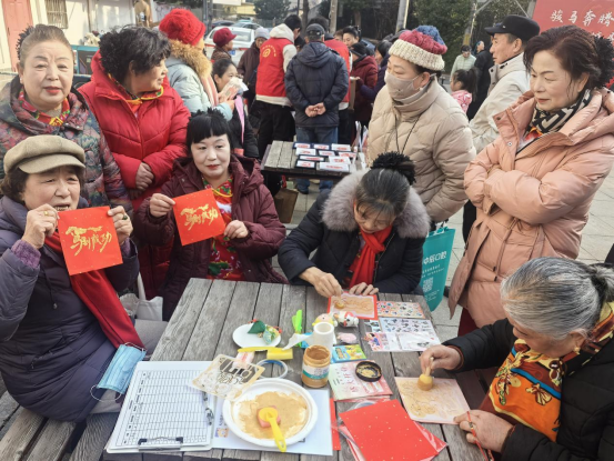 舞台之外,四大主题体验区人气高涨、各具特色。传统文化体验区年味浓郁,非遗剪纸传承人秦少娣现场教授窗花技艺,书法爱好者刘才练挥毫泼墨送“福”字、春联,马年主题挂饰手工坊吸引众多居民亲手制作吉祥饰品,将传统年俗融入指尖。健康便民服务区井然有序,爱心义诊提供免费血压测量与健康咨询,合作口腔机构开展基础检查与护牙科普,移动业务办理点将便捷服务送至家门口。创意互动娱乐区成为孩子们的乐园,新年趣味毛球画创作吸引亲子家庭踊跃参与,欢声笑语不断。教育咨询便民区内,小银星儿童艺术培训设点答疑,为家长提供专业的艺术教育指导,搭建社区与家庭的需求桥梁。