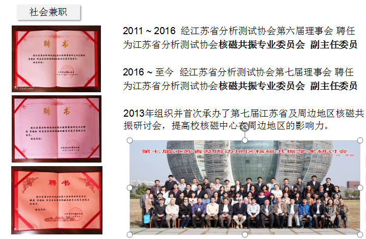 2011年9月,怀揣家国情怀的李晓虹以国家引进人才身份归国,入职苏州大学材料与化学化工学部,任特聘副教授、硕士生导师,同步兼任校核磁中心主任。同年,她受聘为江苏省分析测试协会核磁专业委员会委员,次年便晋升副主任委员,以专业能力快速扛起行业与高校科研重任。