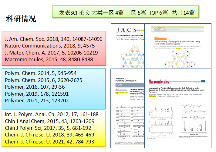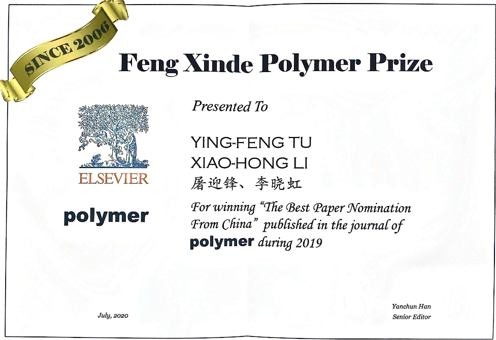李晓虹博士的主要科研成果有:主持国家自然科学基金青年项目、教育部博士点基金及横向项目共6项;参与国家重点研发计划1项;发表SCI期刊论文60余篇;参与编写出版英文核磁学术著作5部;获国家专利授权1项;2020年获国际期刊Polymer颁发的第14届冯新德高分子奖——最佳文章提名奖。