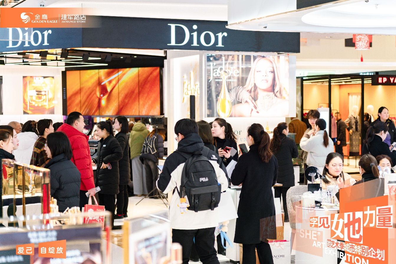 南京金鹰世界打造系列艺术主题活动矩阵,3月7日启幕「女也世界」艺术展开幕酒会暨春日秀场,联动HR赫莲娜、娇韵诗、珂莱蒂尔、奈蔻、鄂尔多斯 1980、荷比俪、莉莉斯等高化及女装品牌,斩获业绩 128万元 ;3月8日 推出G・SPACE 读书思享会与 Art Lounge 艺术工坊,以高频次、强互动的艺术体验,持续激活消费活力。扬州文昌店聚焦高端会员的深度运营,开展多场跨界联动,3月7日联动周大福举办高端VIP沙龙,25位会员到店,实现销售100万元;3月8日,进一步联合smart汽车、娇韵诗等品牌,开展女性沙龙与新品品鉴会,实现品牌与商场双向赋能。