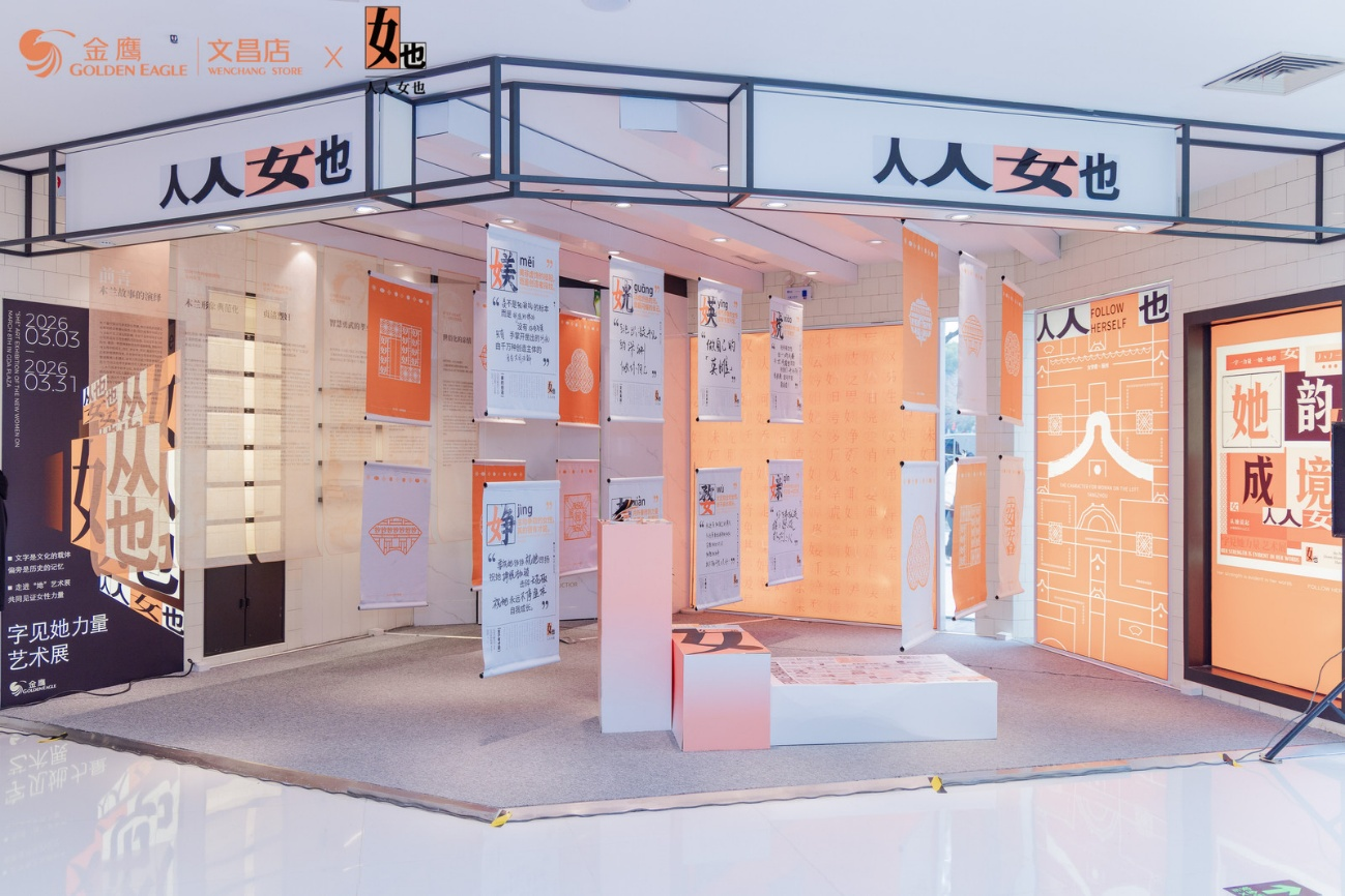 本次「字见她力量」艺术展,是金鹰商贸融合文化艺术与商业场景的创新实践,艺术家王洋洋(从女也团队)研究近千个“女”字旁汉字,打破传统释义框架,重新解读汉字背后的女性故事与精神内核。金鹰商贸从「她」说起,一城一韵,将汉字艺术与各城在地文化深度交融,让文字在当代女性语境中焕发新生,也让女性力量在公共商业空间被看见、被解读、被共鸣。