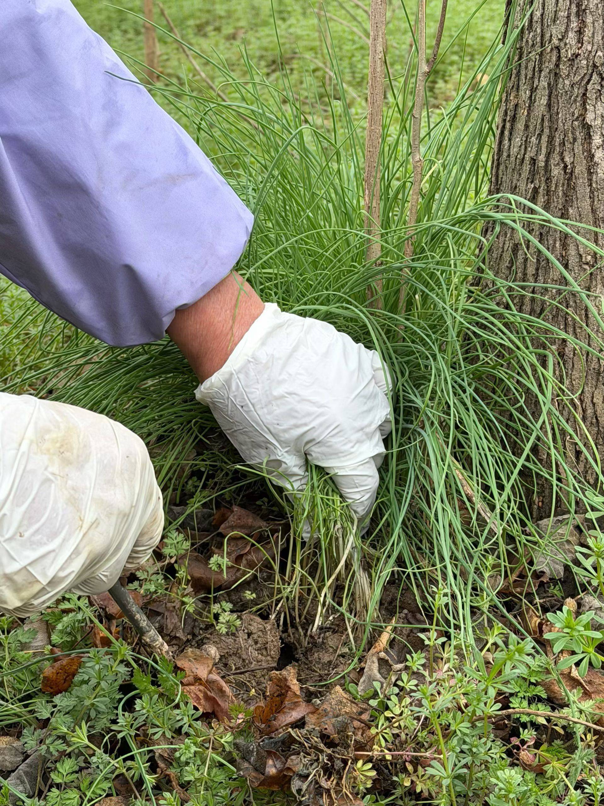 紫色的小花挨挨挤挤,在林间铺成一片梦幻花海。阳光穿过笔直的水杉枝桠,在花瓣上洒下斑驳光影,风一吹,花浪轻摇,仿佛闯进了藏在乡野的春日秘境。