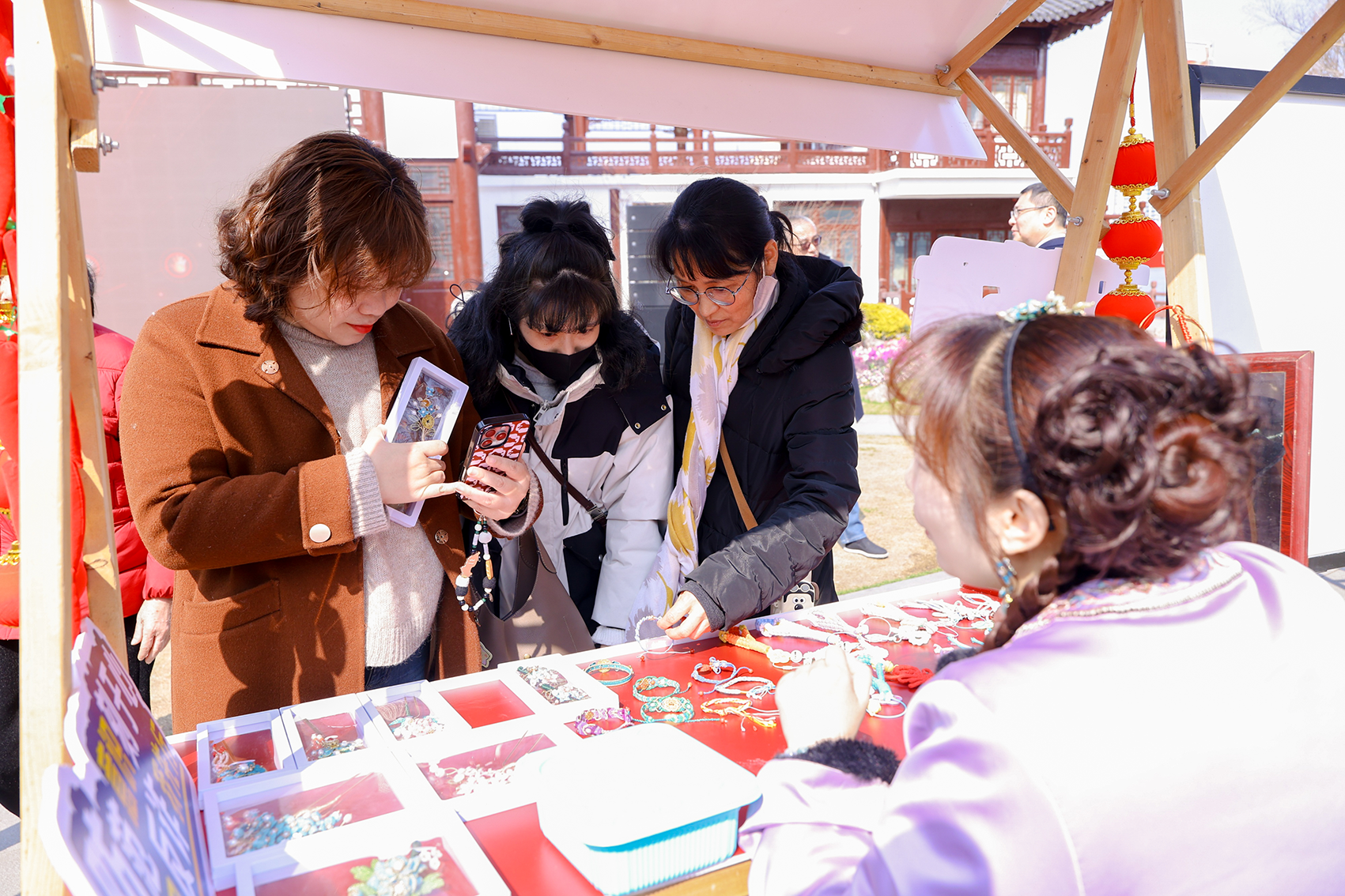 在非遗体验区,市民们兴致勃勃地参与编绳结、制作漆扇、体验金银细工等传统技艺,在指尖流转间感受中华优秀传统文化的独特魅力。金银细工体验区前,项目代表性传承人杨子江先生一边手把手教授制作技艺,一边耐心传授银饰日常保养的小妙招;不远处的漆扇制作区,市民们根据自己的喜好调配色彩、绘制扇面,一把把独一无二的漆扇在手中诞生,现场洋溢着创作的热情与欢笑声。