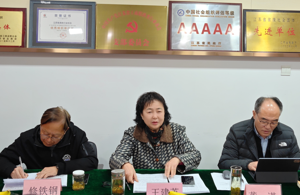 江苏省酒类行业协会常务副会长、秘书长王建英对南京市酒类收藏协会一行表示热烈欢迎。她详细介绍了省酒协组织架构与发展成果,并指出,省酒协与市酒藏协会虽定位各有侧重,但均以传承中华酒文化、服务酒业发展为使命,同源同向、相得益彰。针对当前行业面临的库存高企、价格倒挂、需求疲软、竞争内卷、结构失衡、成本上升等系统性压力,王建英秘书长重点解读了全国两会关于酒业振兴的核心议题,围绕历史经典产业定位落地、去库稳价、标准建设、创新转型、文化出海五大方向,阐明政策导向与破局路径,为行业纾困发展指明方向。