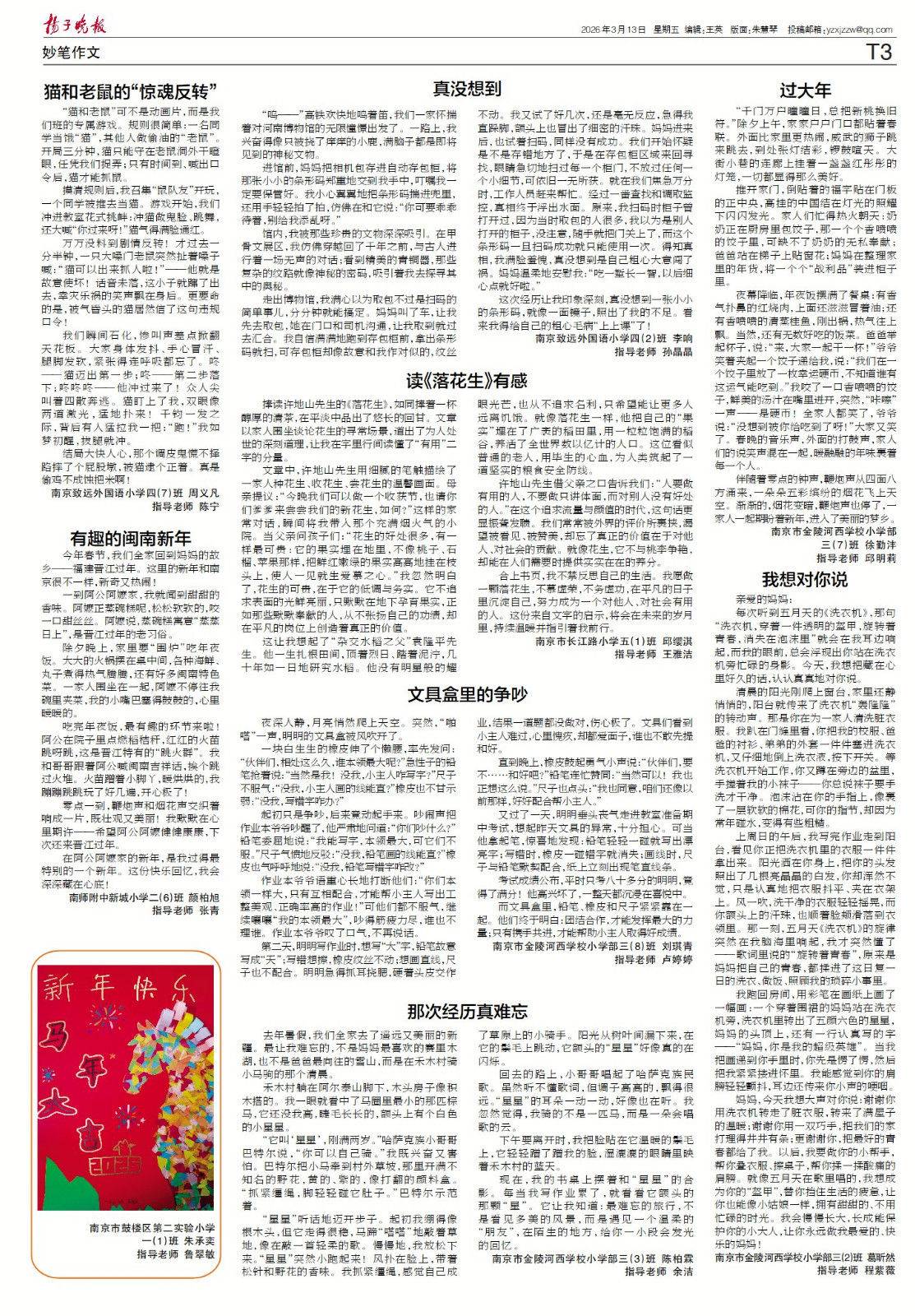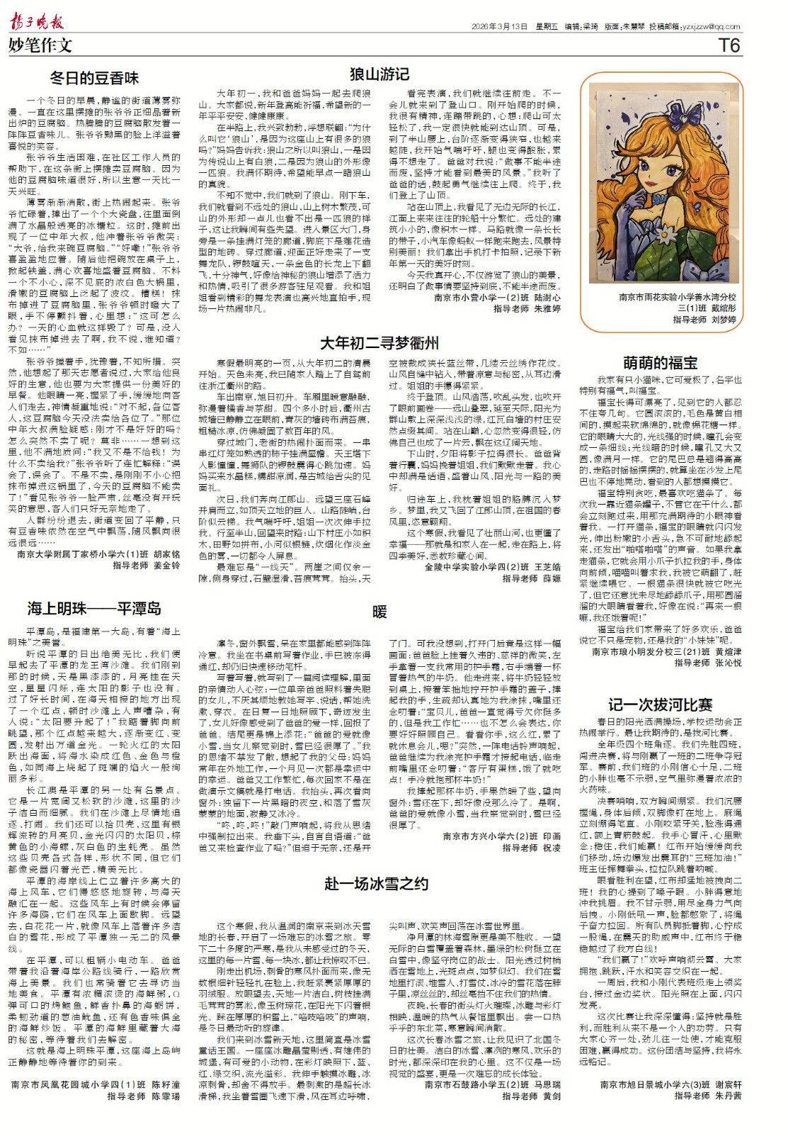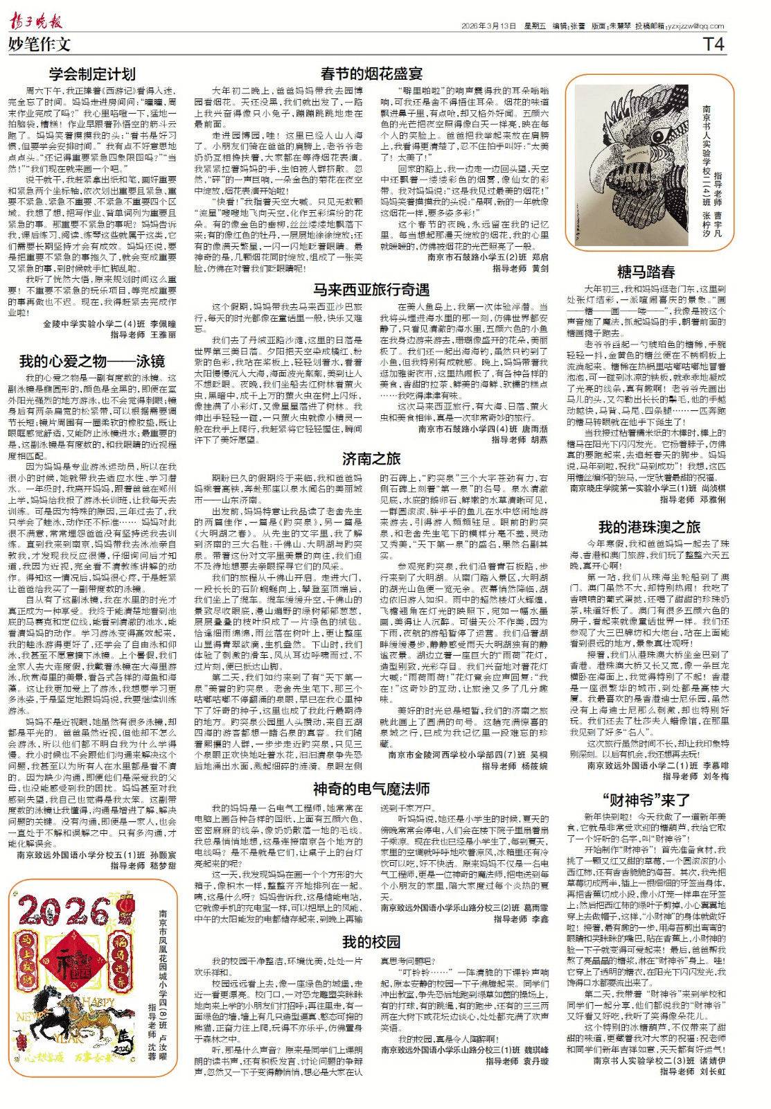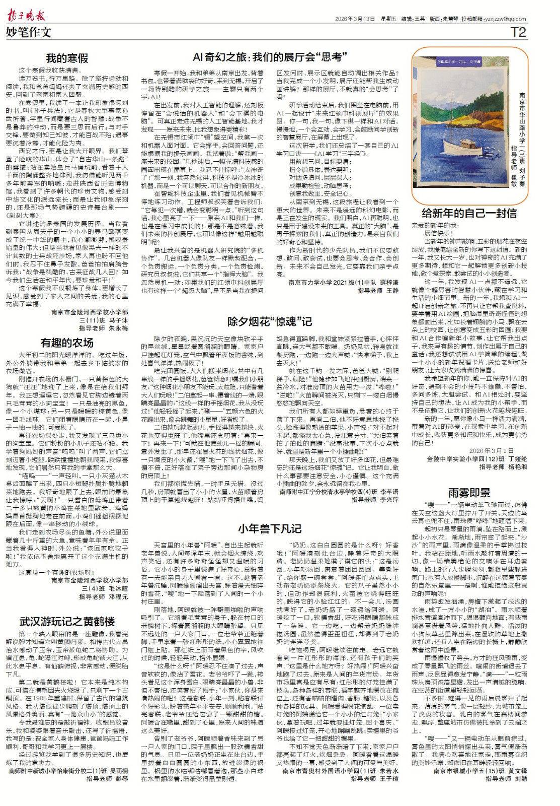 【喜报】2026年3月13日扬子晚报小记者刊登作品