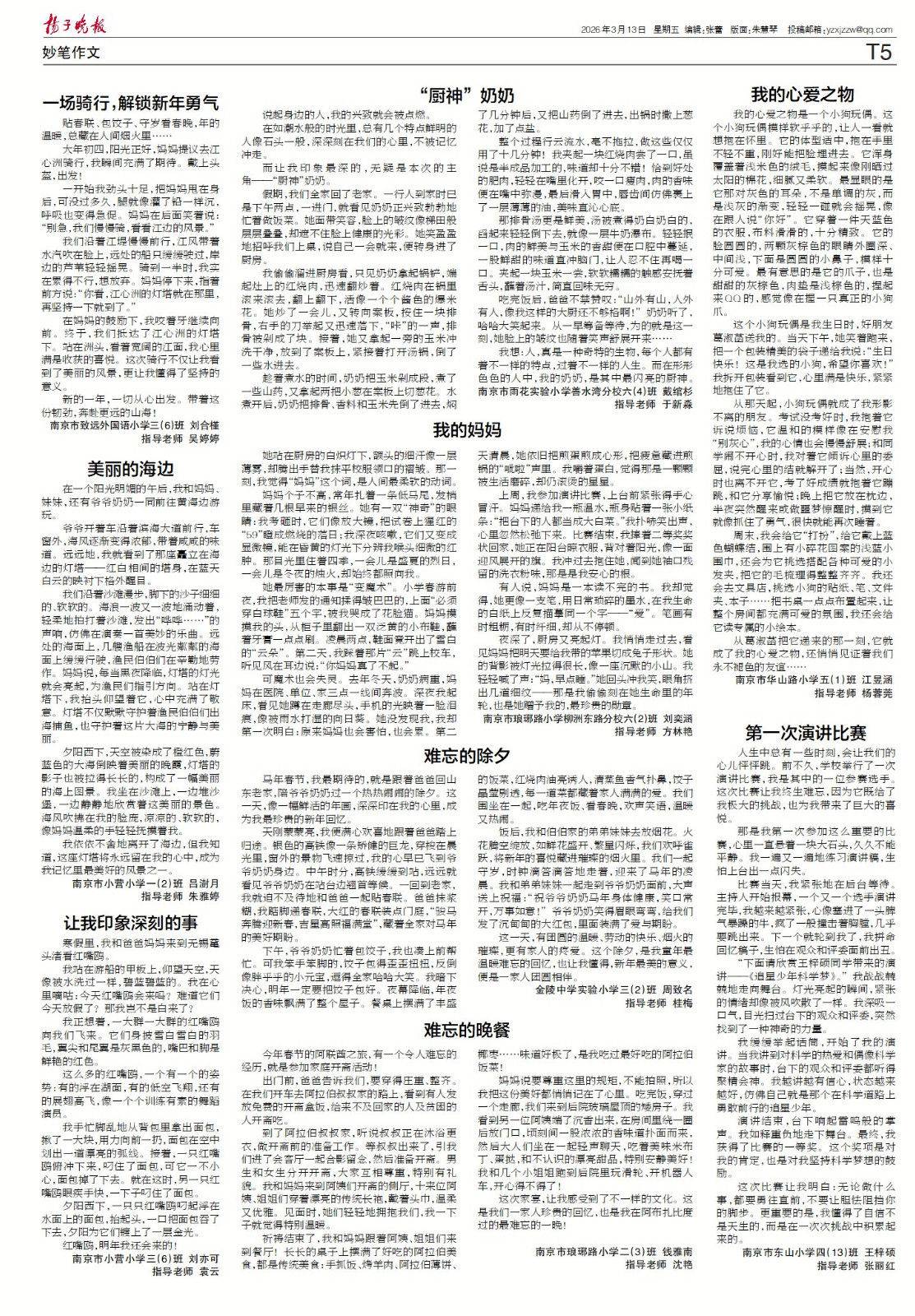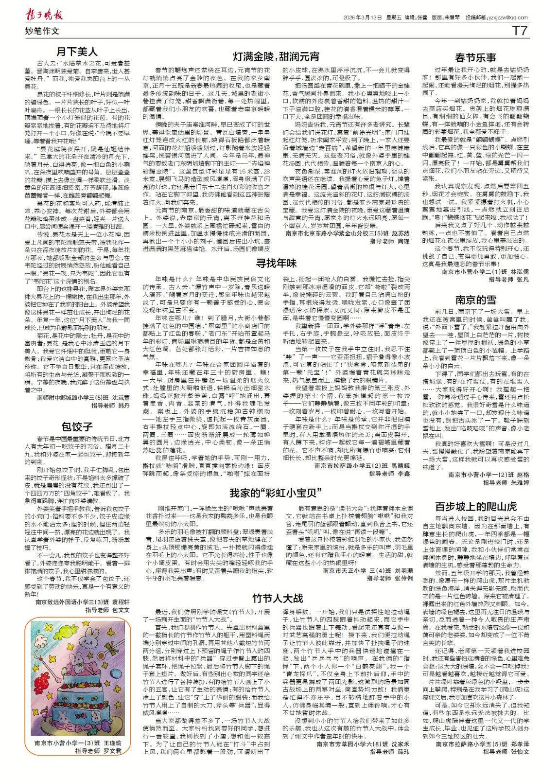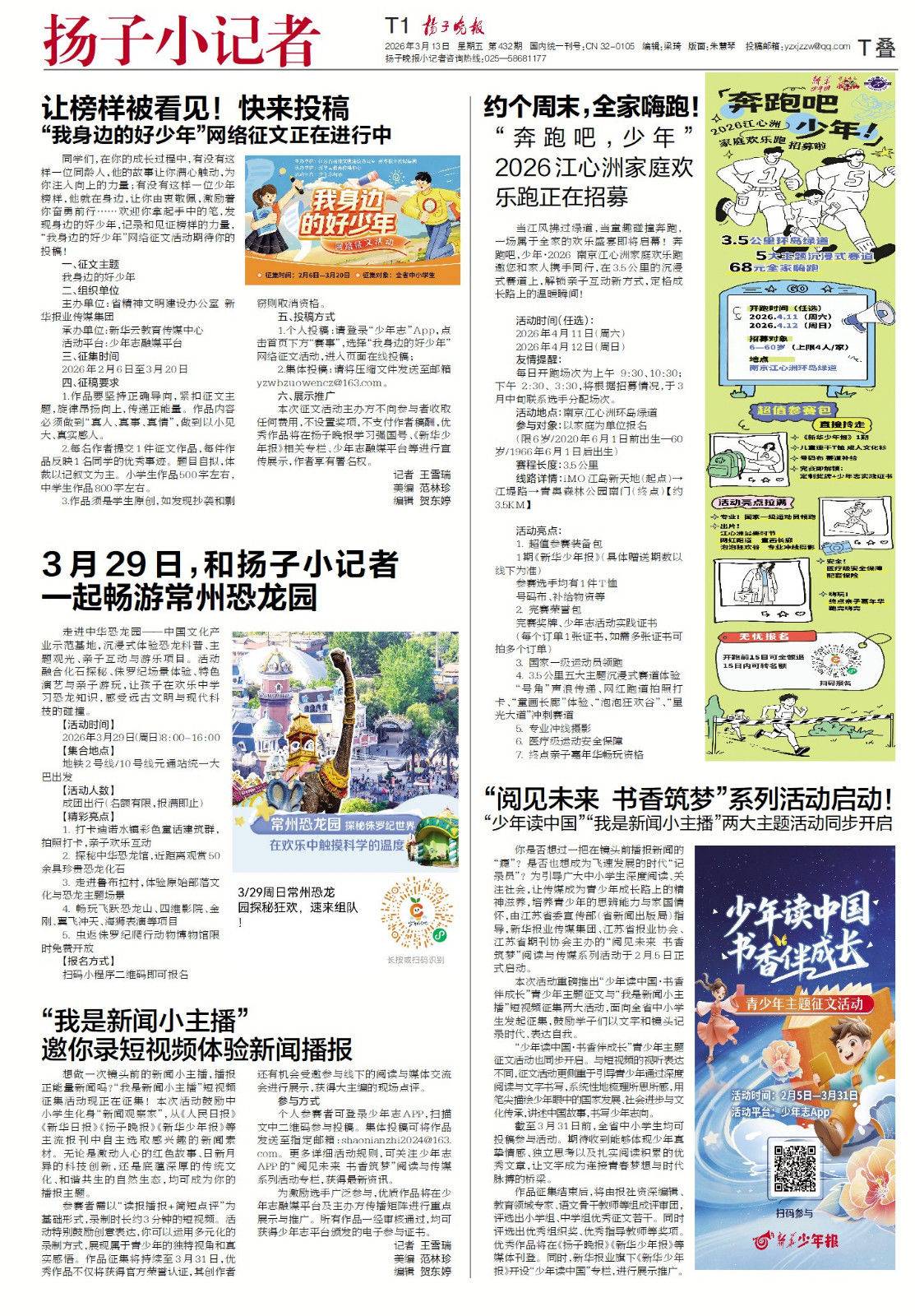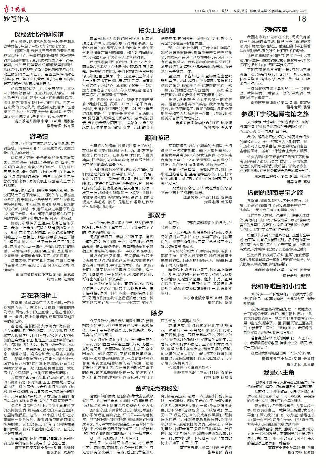 【喜报】2026年3月13日扬子晚报小记者刊登作品