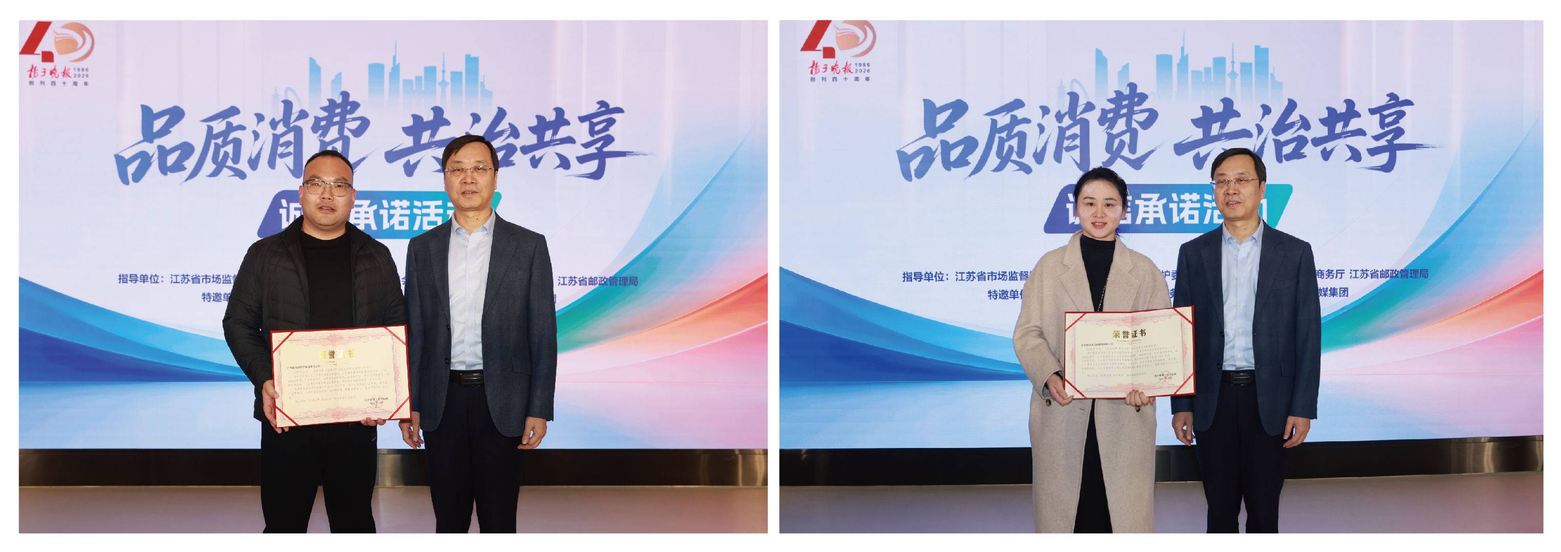 江苏国尚供应链管理有限公司作为诚信承诺单位特邀代表,与受邀参加活动的40多家多行各业企业代表一起,现场分批签署“品质消费共治共享”诚信承诺书,并获颁“品质消费共治共享”诚信承诺单位荣誉证书,彰显企业担当。