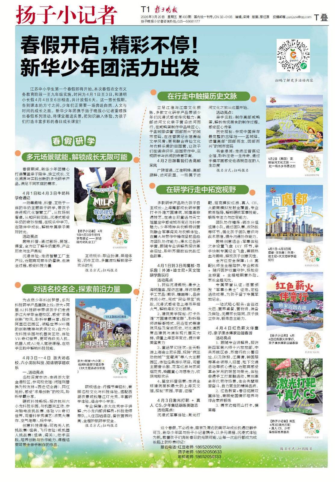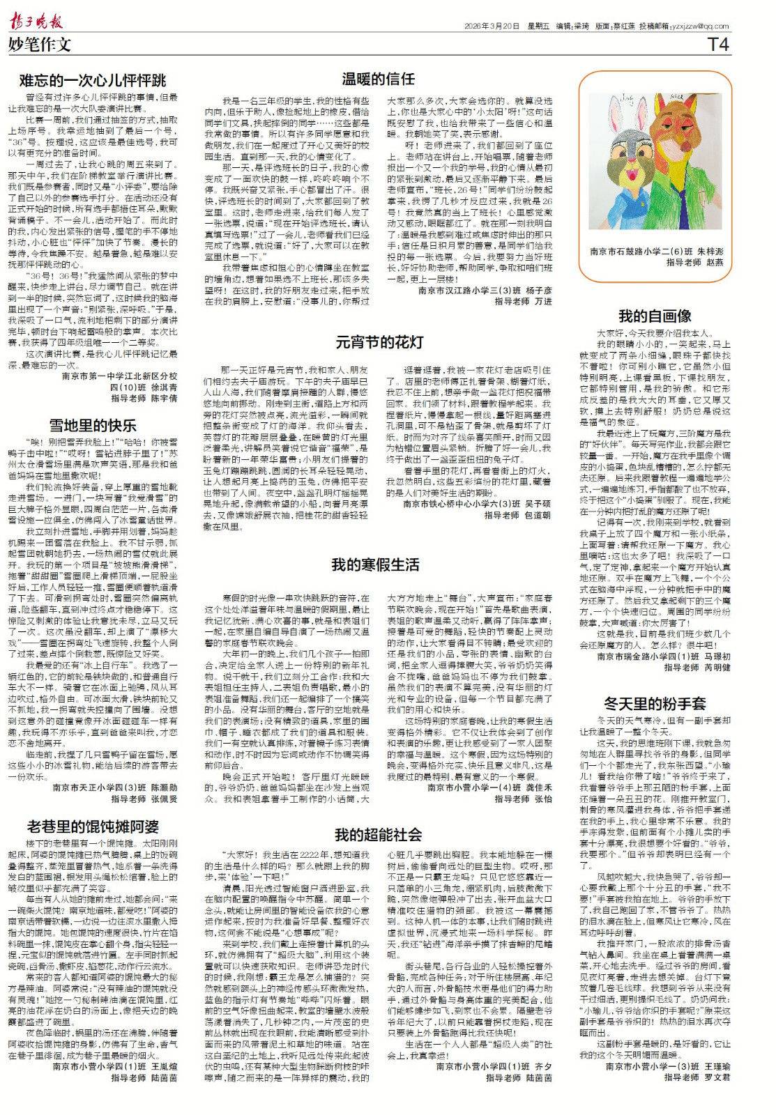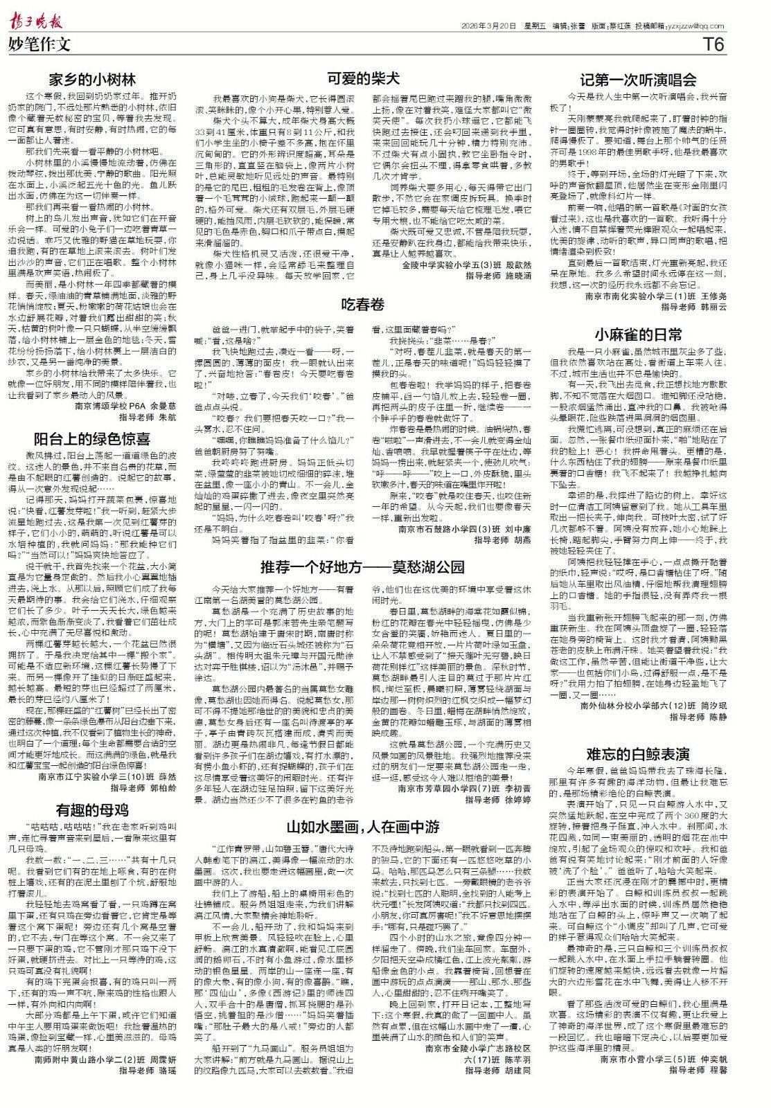 【喜报】2026年3月20日扬子晚报小记者刊登作品