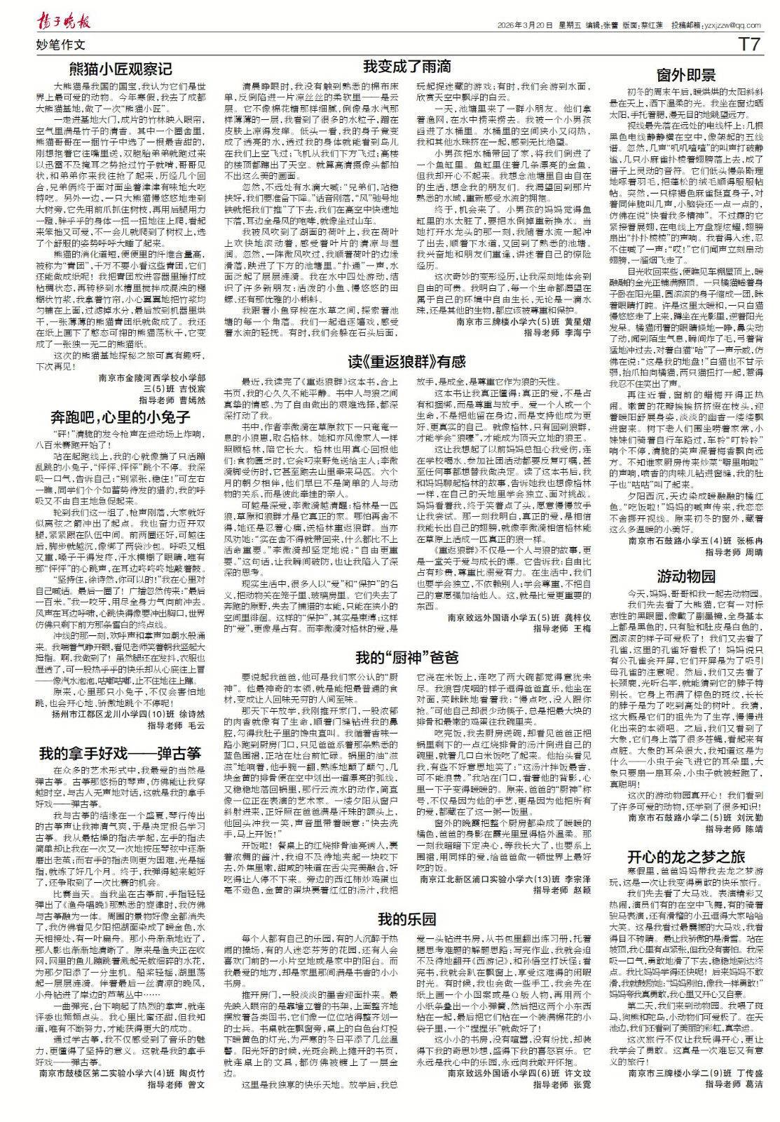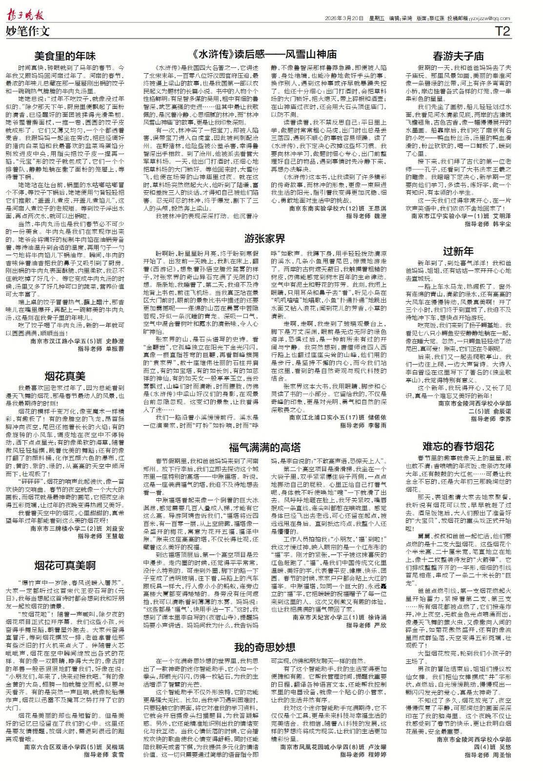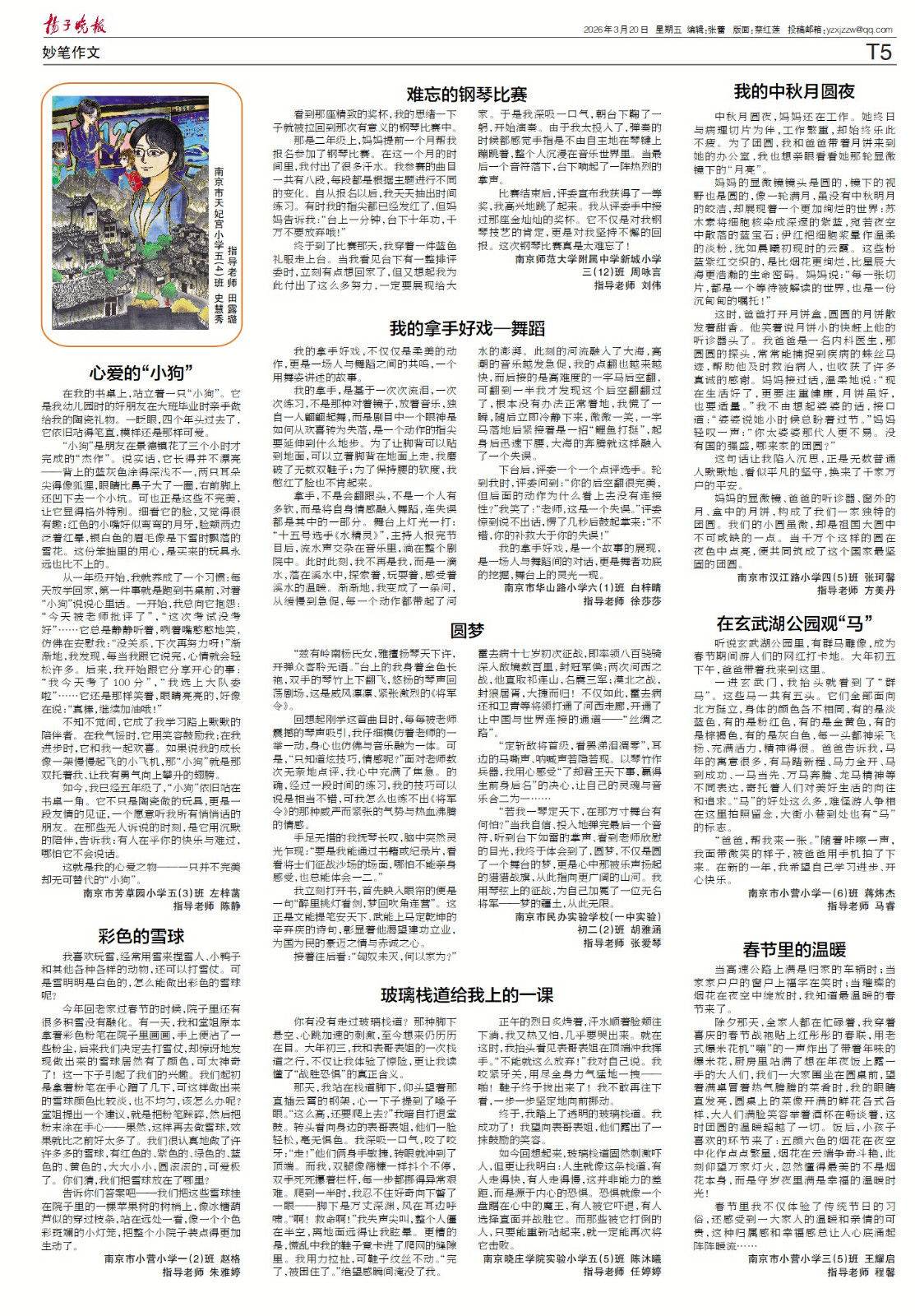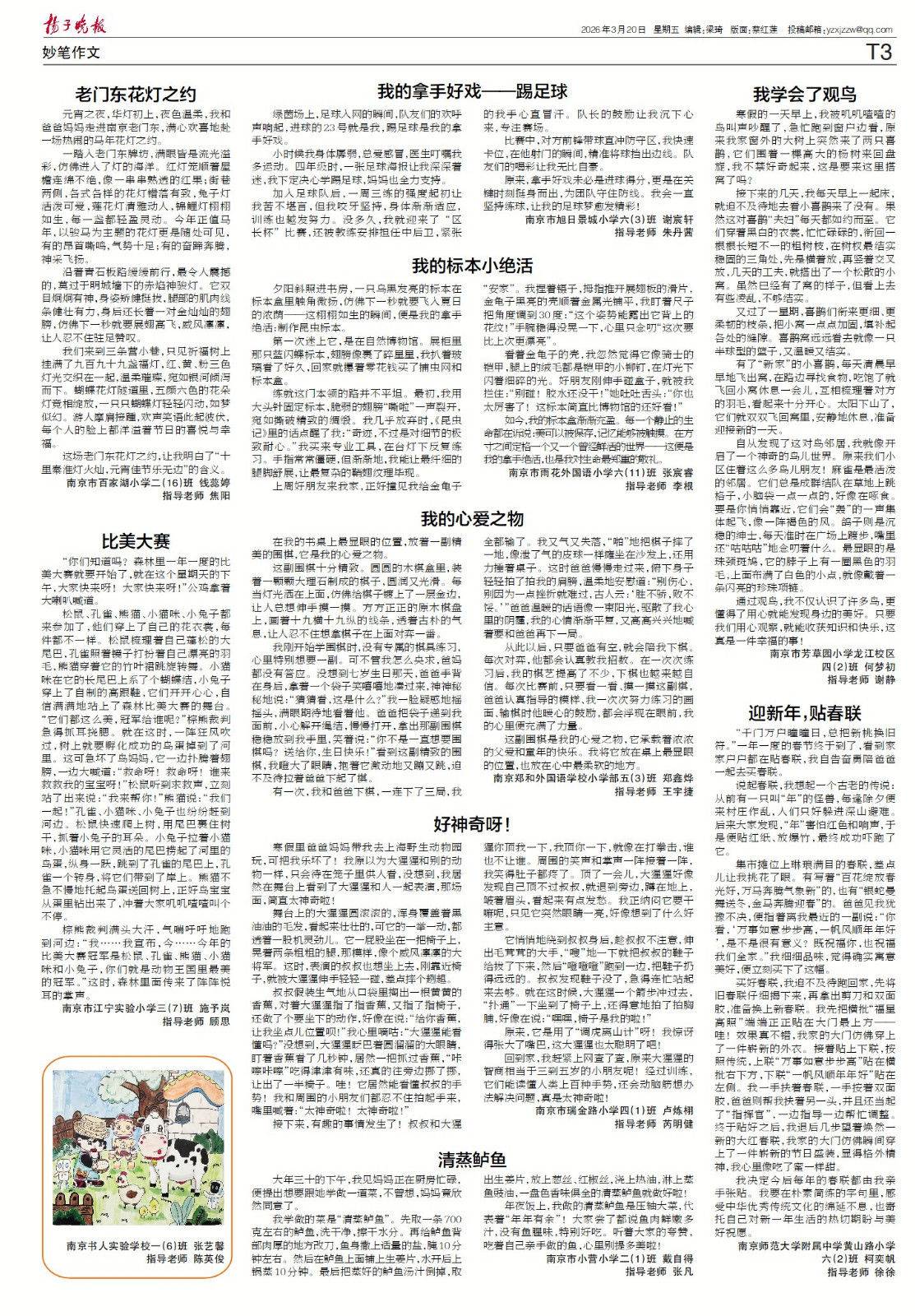 【喜报】2026年3月20日扬子晚报小记者刊登作品