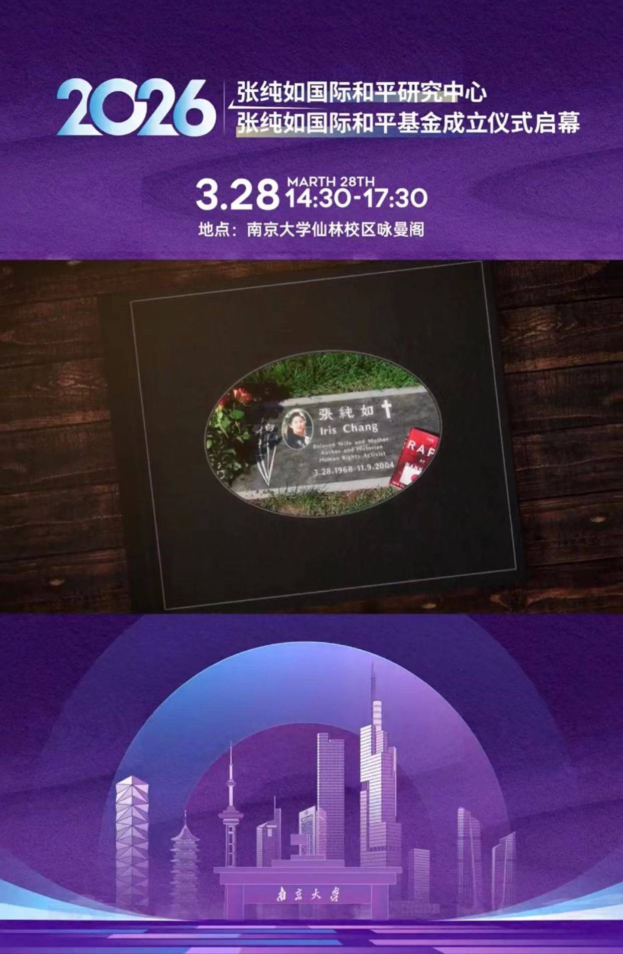 2026年,在她曾经奋力追寻真相的这片热土——南京,南京大学国际关系学院与金鹰国际集团携手成立“张纯如国际和平研究中心”。只为延续那束不灭的薪火,让正义与和平的精神,生生不息,代代相传。张纯如从未离开。她活在我们每一次对历史的凝视中,活在每一个热爱和平的人心里。铭记历史、珍爱和平。