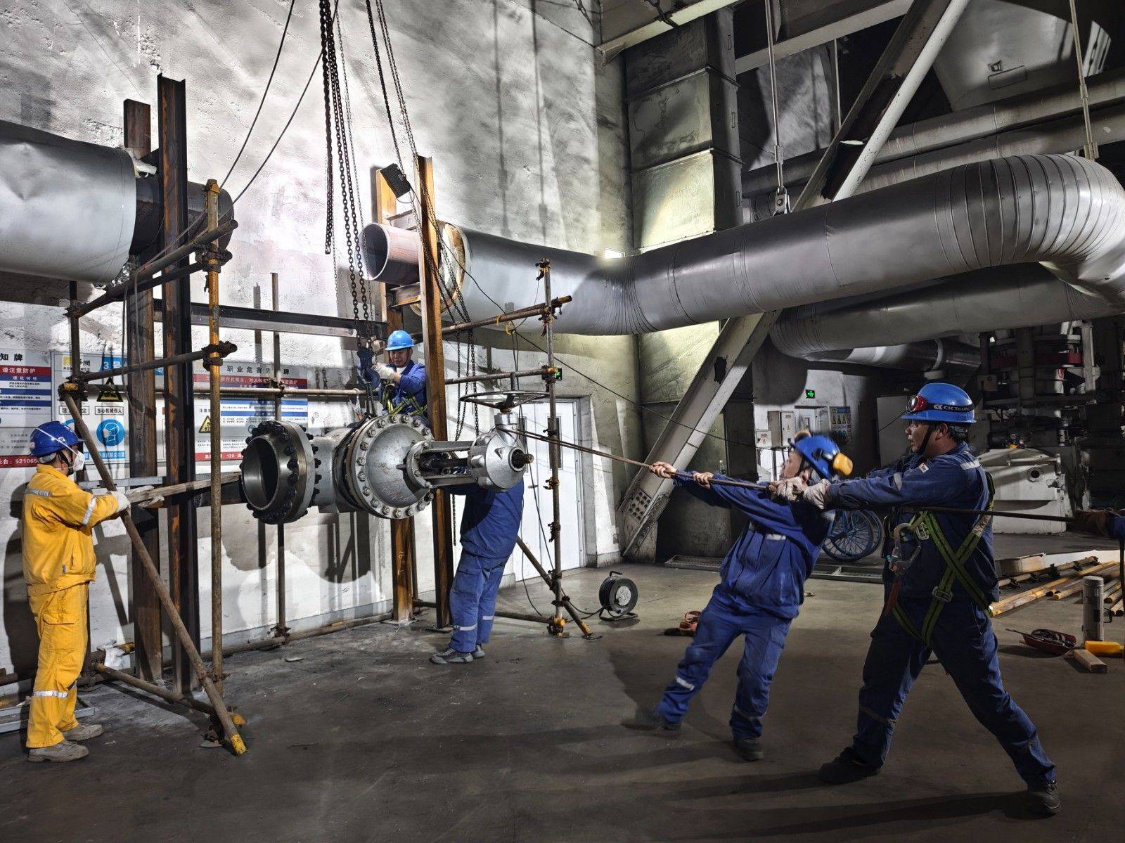 方案得到经开区政府和滨江热力公司认可后,华润常熟电厂便迅速行动、攻坚克难,第一时间抽调骨干力量、统筹协调各类资源,全力推进供热母管手动阀加装工作。为最大限度降低对供热的影响,作业特意选择在夜间用汽量最少的时段开展。